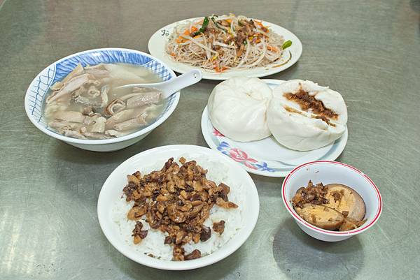滷肉飯與滷鴨蛋。兩款滷汁成份不同,熬煮時間也不一樣。滷肉完美的油花滑順,但不想吃太油膩的饕客,也能選擇瘦肉較多的滷汁,一點也不會感覺膩。滷鴨蛋的滷製時間相當重要,除了特製的滷汁,火喉也很講究,才能讓蛋白入味又不死鹹,蛋黃不乾澀,充滿彈性與香氣。張老闆客氣的說,滷鴨蛋是因為有客人希望有小菜可以搭配主食食用,才研發出這道簡單卻人氣直逼四神湯與手工包的滷鴨蛋。